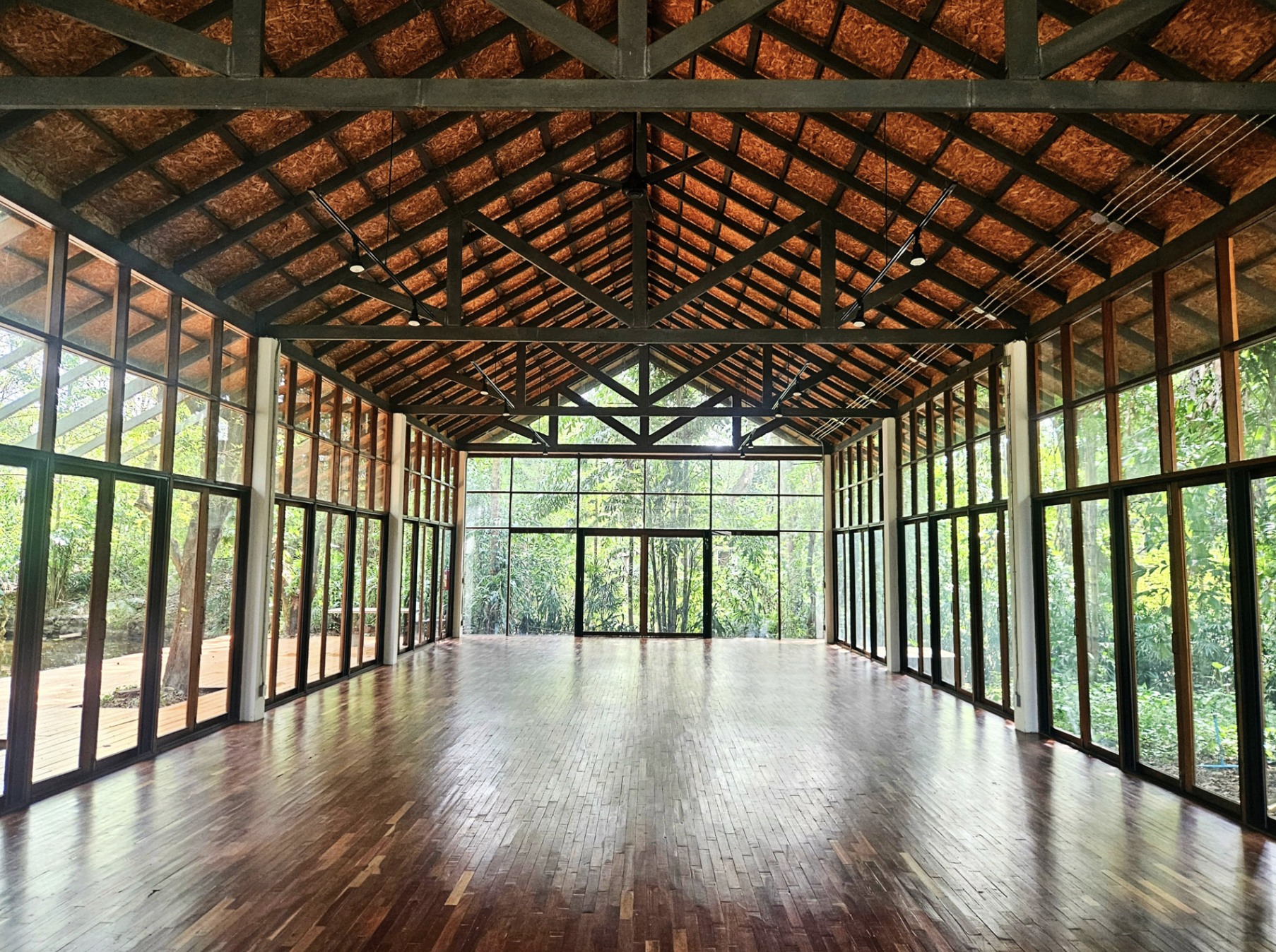 A large forest yoga sala (156 sqm) for group practice immersed in nature
