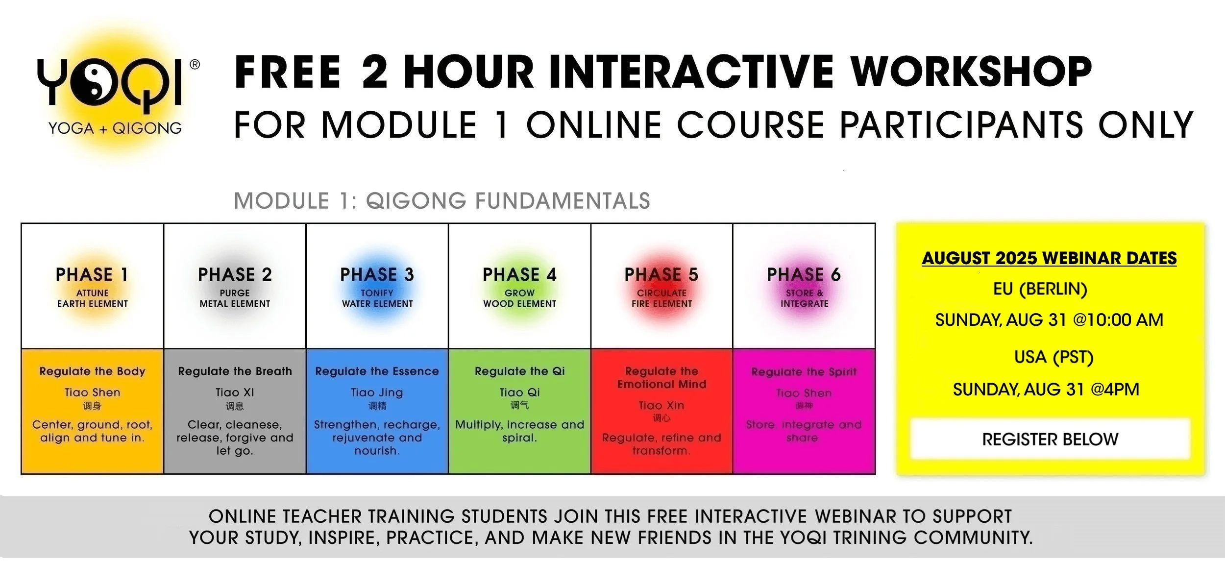 Marisa is offering a series of free monthly webinars to support your study and connect you with others taking the Online Training course. The webinar uses the Zoom platform, which allows a large amount of people to participate, as well as break out into interactive study groups. The links will be sent in an email the day before and posted on the YOQI FB group. We encourage everyone to participate in real time!